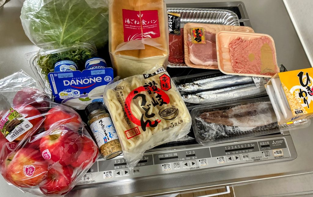 秋刀魚は1匹(税込216円) 2斤ほどの大きさの食パンが税込204円。