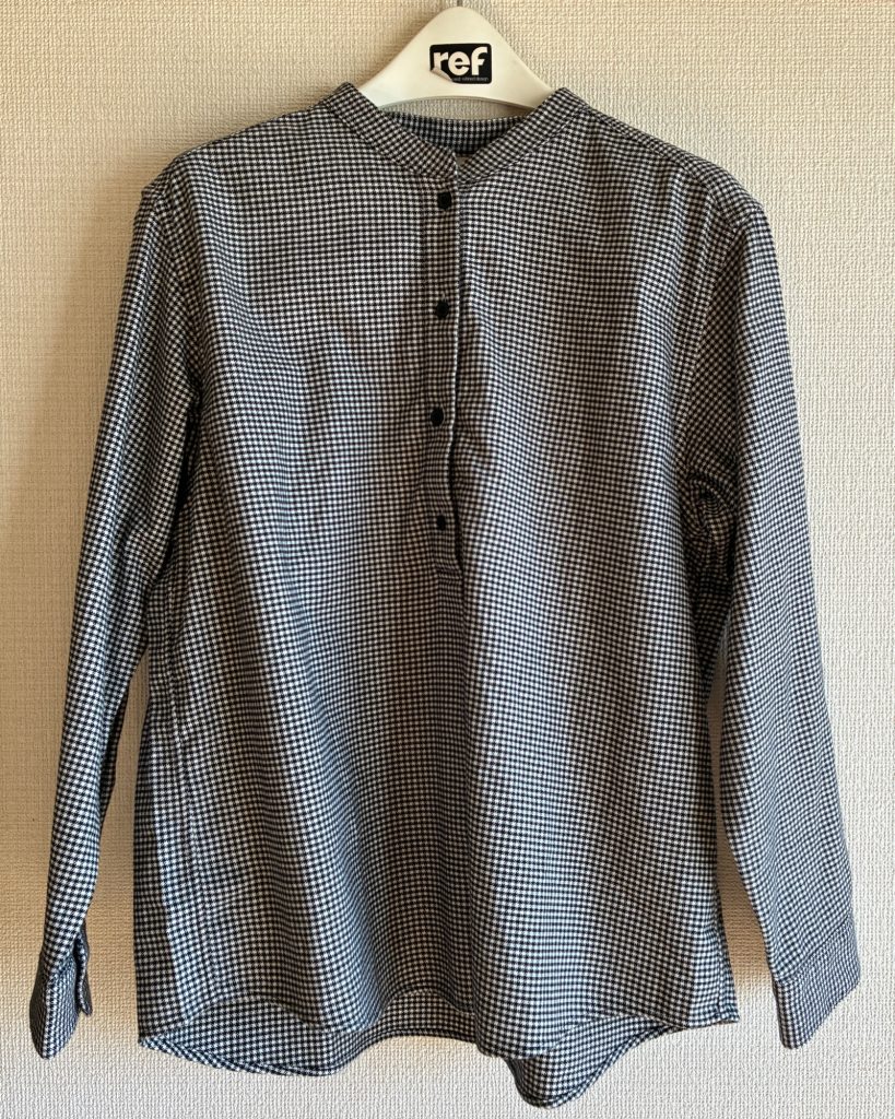 また相変わらず定番のスタンドカラー長袖ブラウス。