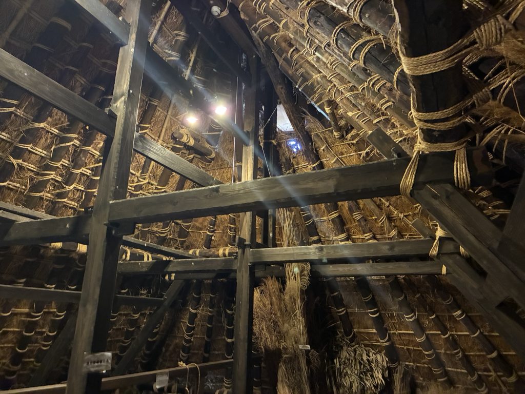 資料館の2階へ。茅葺き屋根の屋根裏部屋は通気性が良さそう。