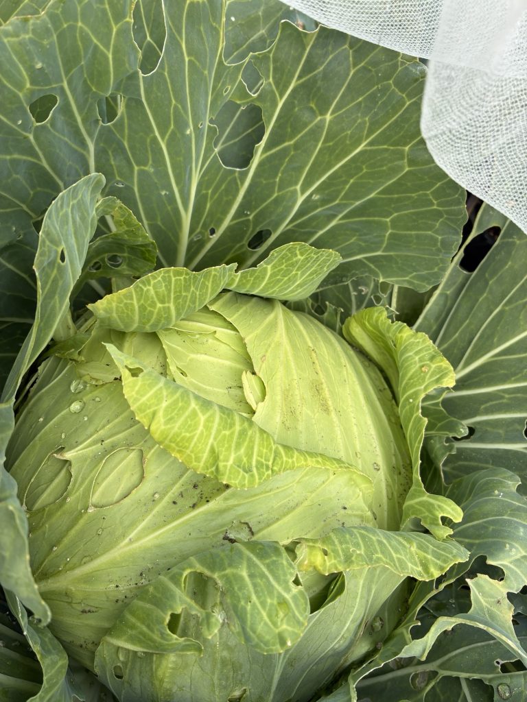 ネットしてても全部虫食いであるが、外葉を取ったら大丈夫です。