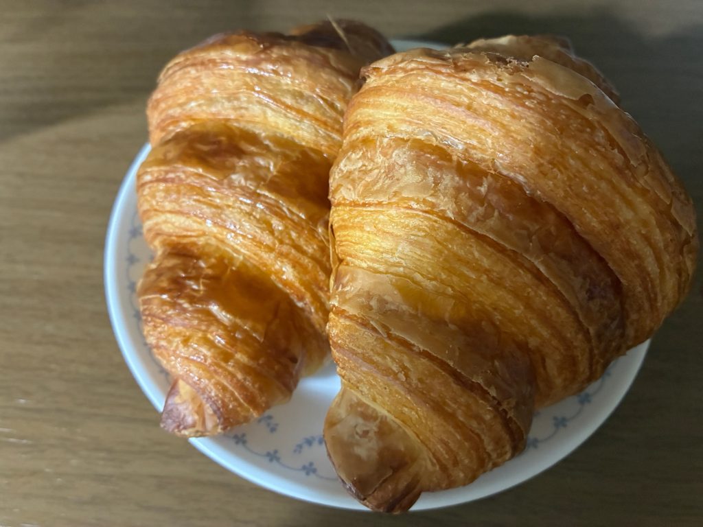 夫が息子へのお土産にとパンを買ってきた。クロワッサンと食パン。